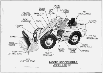 En 1953, la empresa Mixermobile Manufacturers, impulsada por los hermanos Elmer y Ed Wagner, presentó los primeros cargadores de bastidor articulado: los modelos Scoopmobile LD-5 (1 yd³) y LD-10 (2 yd³).